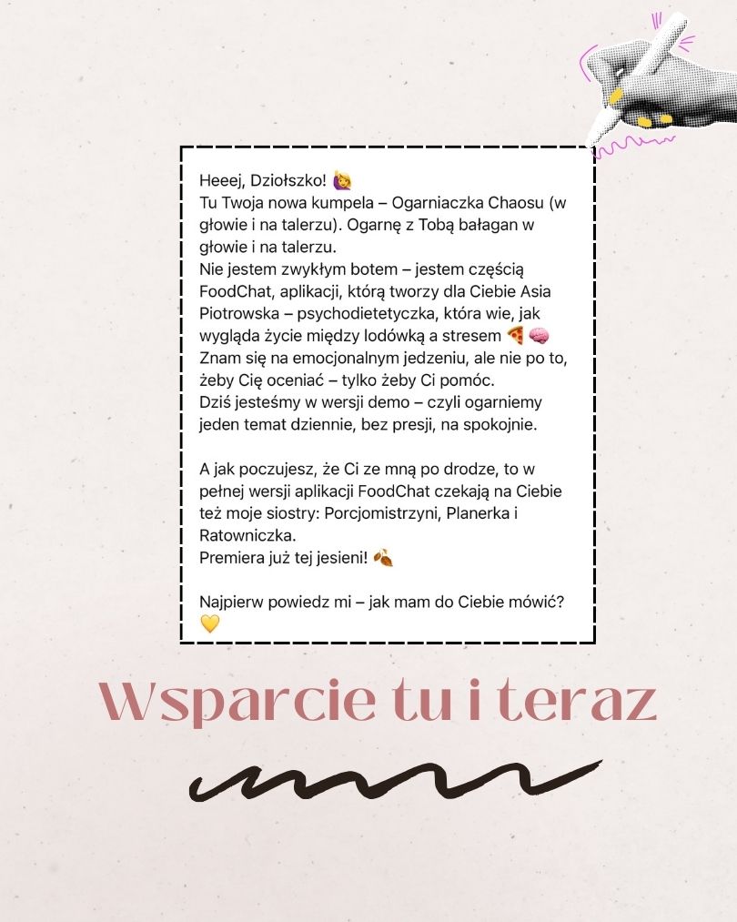 Pierwsza na rynku psychodietetyczna asystentka, która mówi Twoim językiem, a nie jak suchy bot.