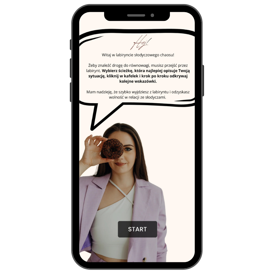• 🎥 Krótkie filmiki – rozwijają temat i pomagają zrozumieć mechanizmy, które stoją za Twoją ochotą na słodycze.